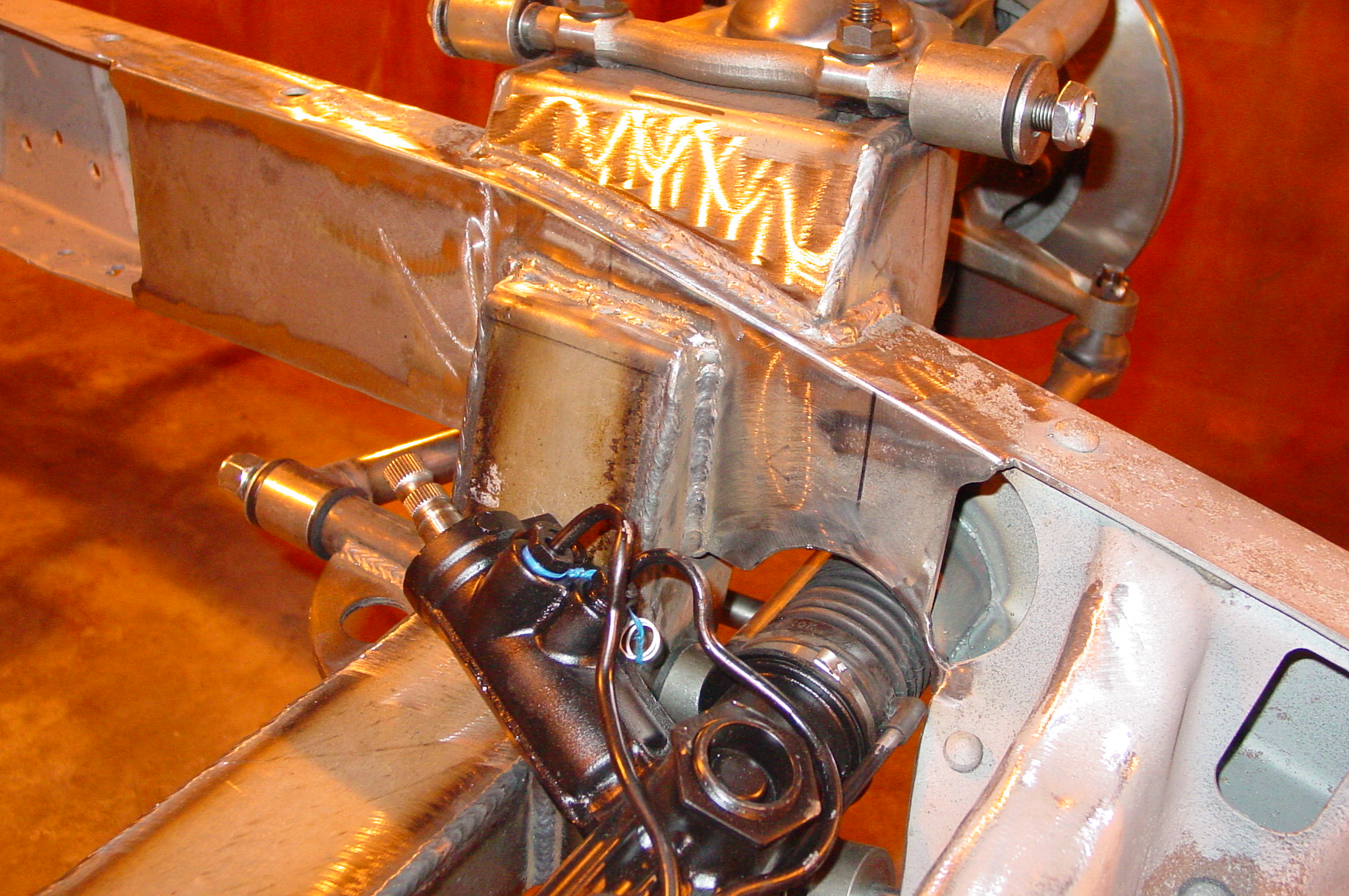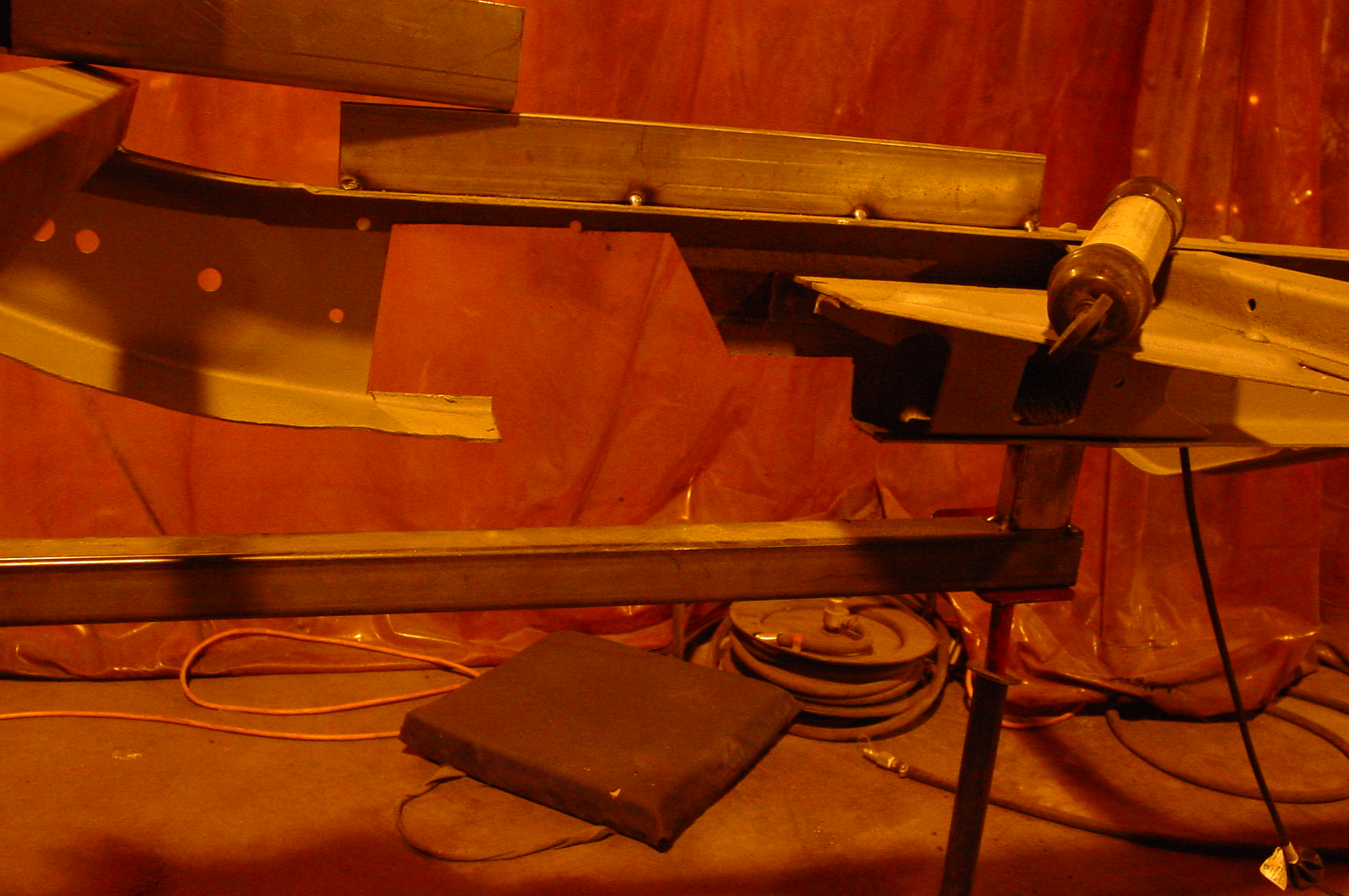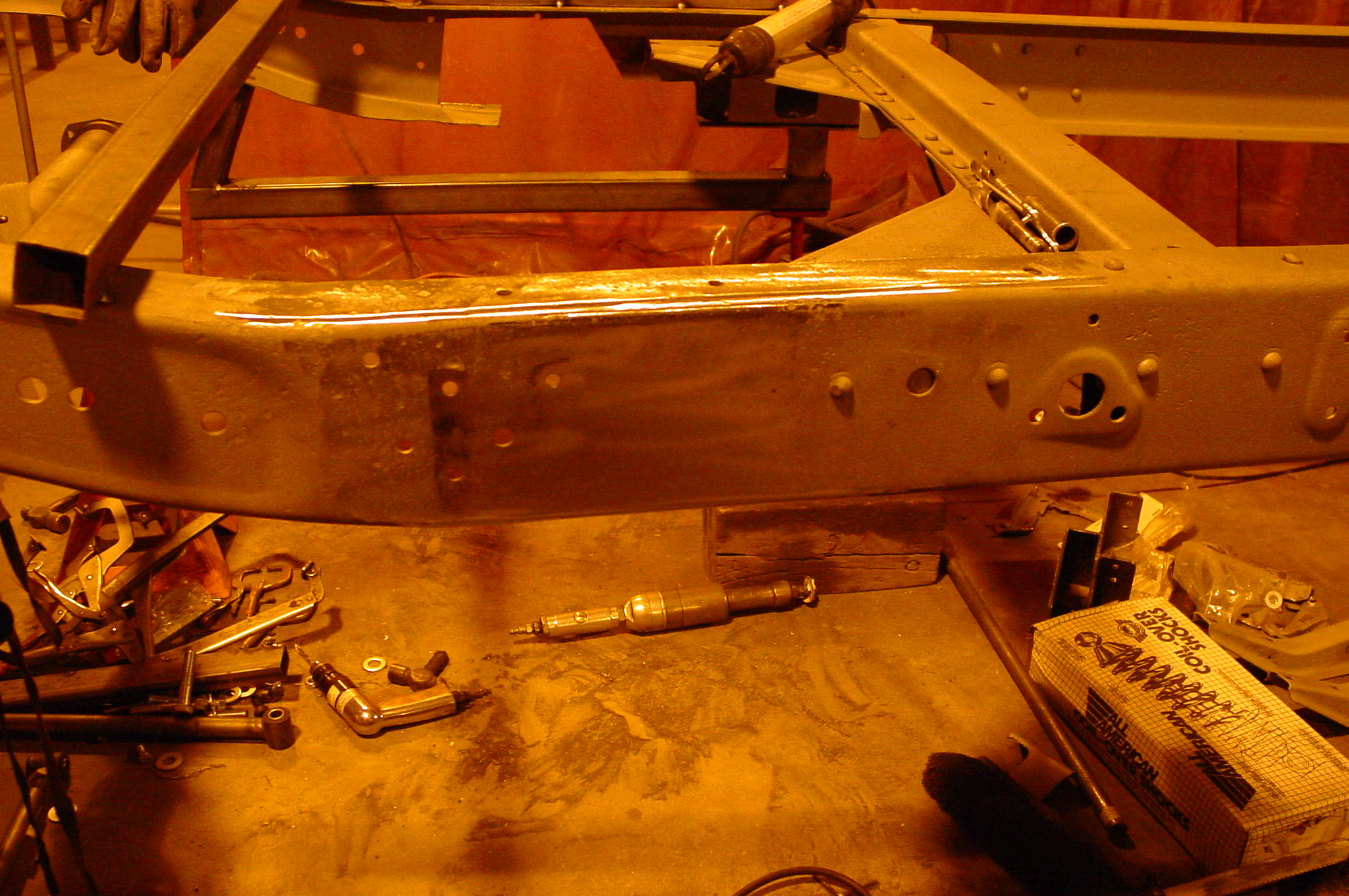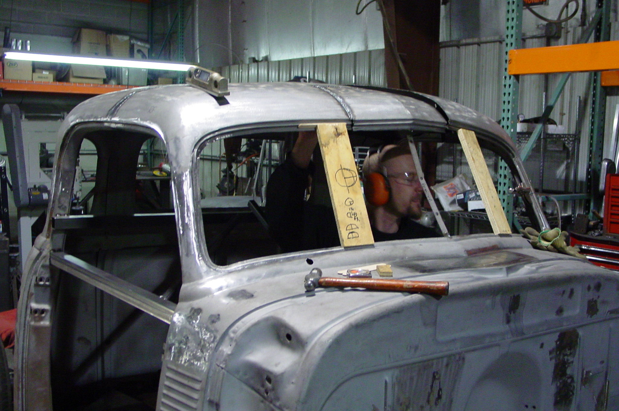 Converting a 49 Chevy pick-up to independent front suspension with disc brakes, from the stock straight front axle and drum brakes. Adding a four link rear suspension with coilovers and a new Ford 9" in the rear. Boxing the frame in the critical structural areas. We also repaired some rusted holes in the frame. A slight chop to the top may be on the agenda next. The top has now been chopped 2 inches. This gives the truck a good look without being two extreme.