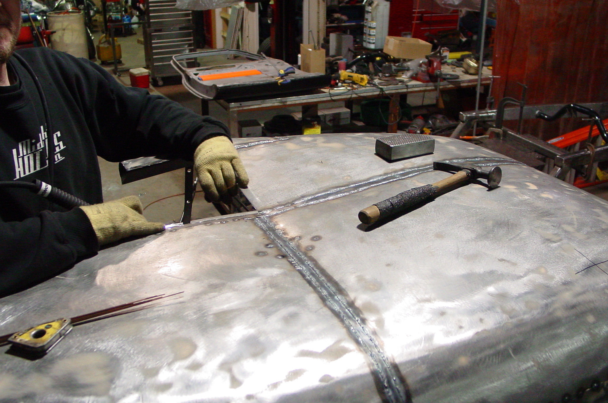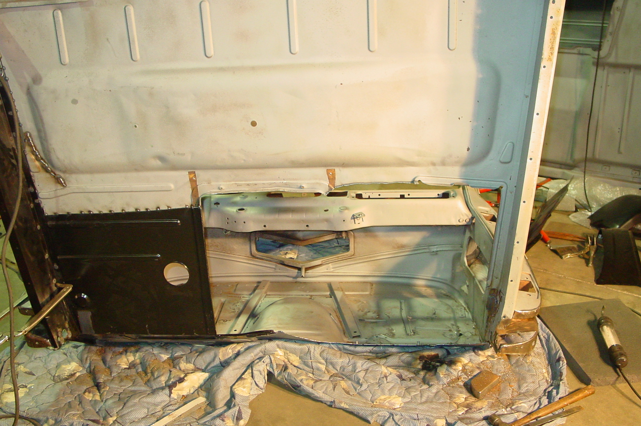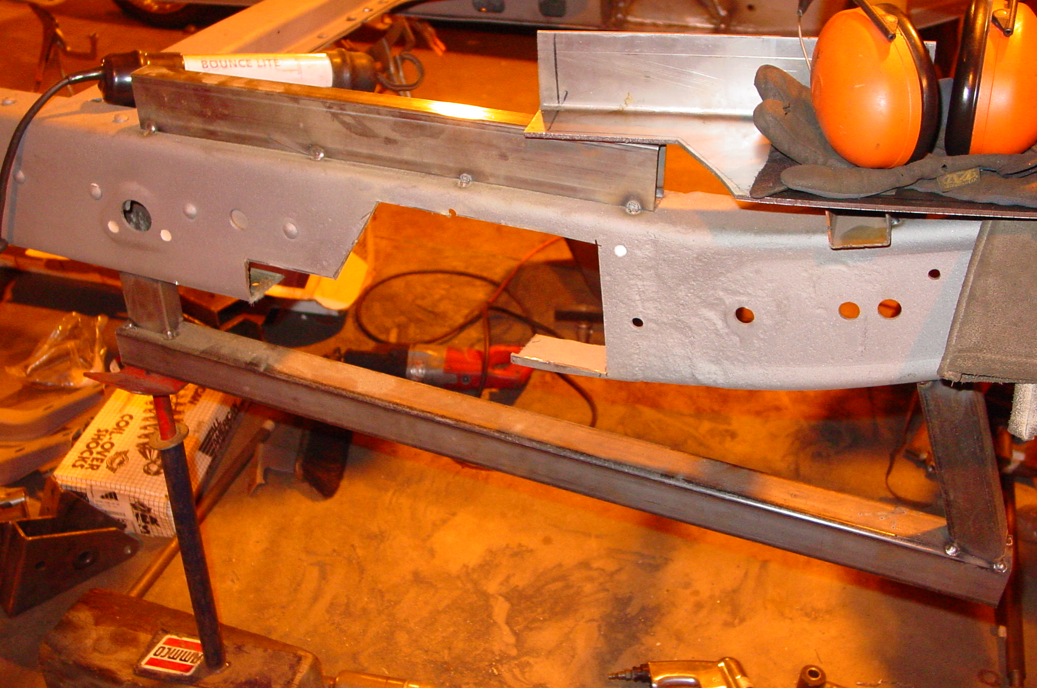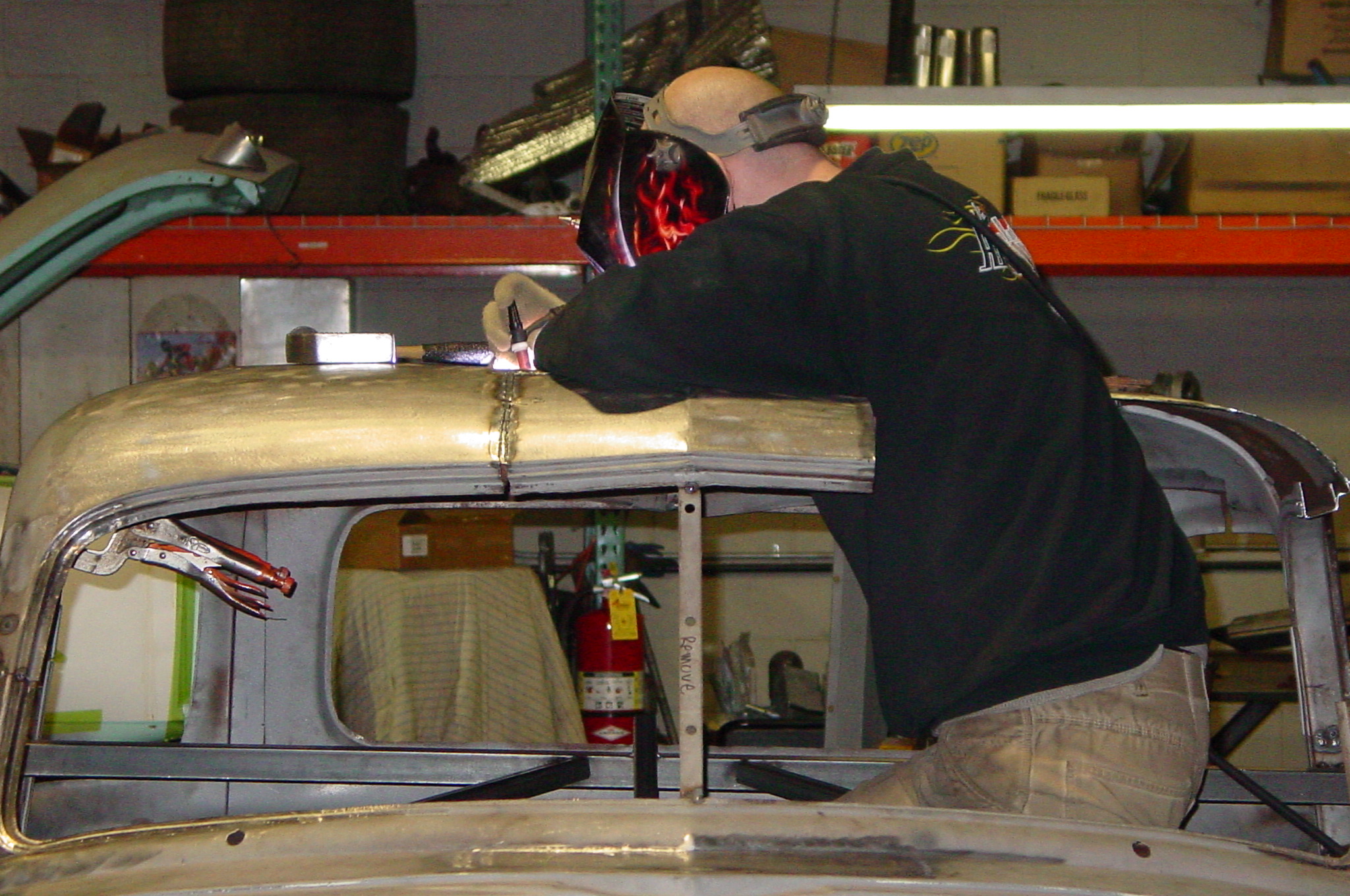 Converting a 49 Chevy pick-up to independent front suspension with disc brakes, from the stock straight front axle and drum brakes. Adding a four link rear suspension with coilovers and a new Ford 9" in the rear. Boxing the frame in the critical structural areas. We also repaired some rusted holes in the frame. A slight chop to the top may be on the agenda next. The top has now been chopped 2 inches. This gives the truck a good look without being two extreme.
