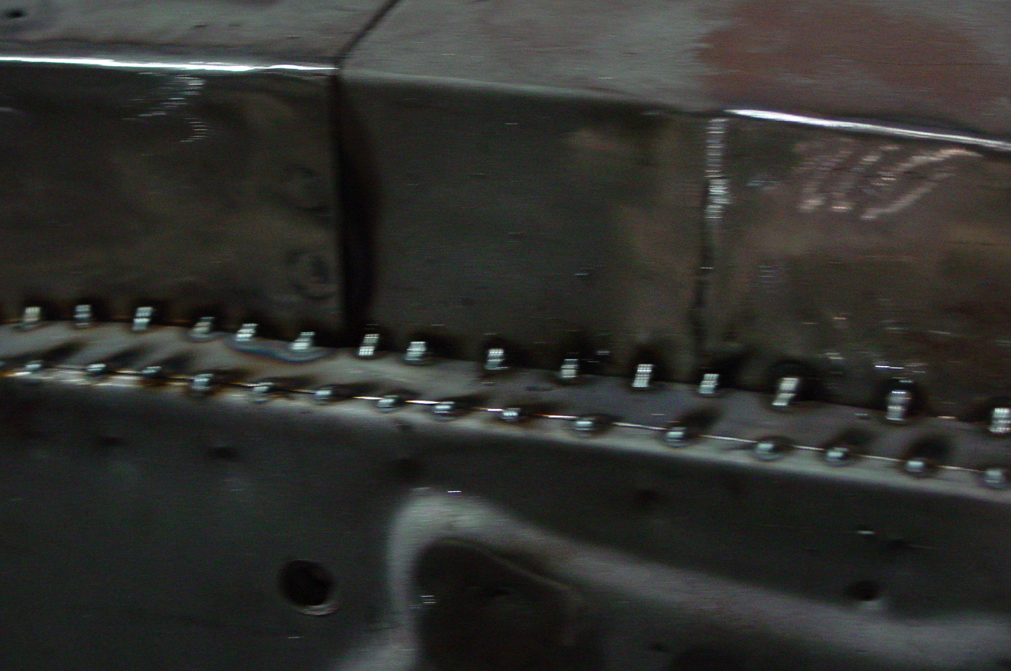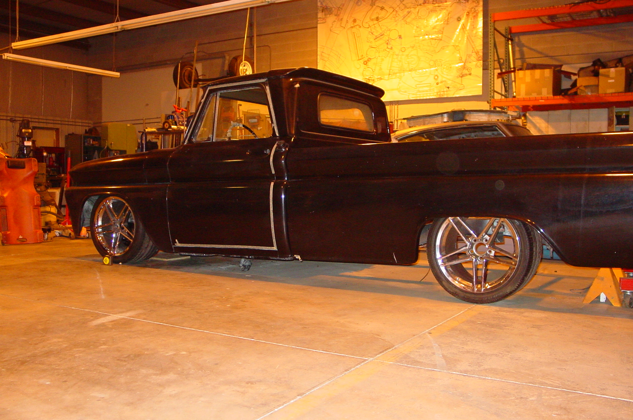 After blasting the old paint off we found a lot of filler over the rust holes. We removed the old rusted metal and replaced them with new steel. Now that the body is solid, the modifications have begun. -- Firewall, inner fenders, front fenders, front bumper, rear bumper, tailgate, and rear wheel opening.